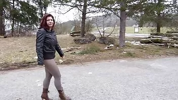 شلخته ایستاده پله جسیکا لین الاغ مسن خود را در فیلم سگسی معرض دید قرار می دهد